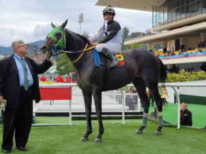 Los profesionales venezolanos: el jinete Emisael Jaramillo y el entrenador José Francisco D’Angelo ocuparon la segunda casilla con el potro...