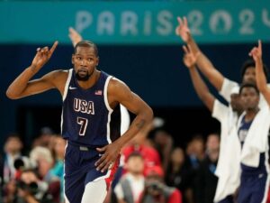 El jugador de los Suns de Phoenix y medallista de oro en los Juegos Olímpicos de París 2024, Kevin Durant,...