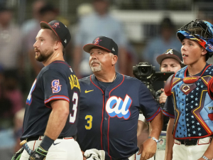 Cal Raleigh se convirtió el lunes en el Truist Park de Atlanta en el primer receptor y bateador ambidiestro en...