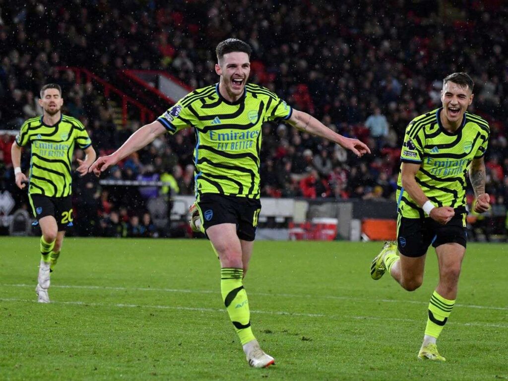 Con los hinchas visitantes coreando “vamos a anotar dentro de un minuto”, Declan Rice añadió el quinto a los 39, con lo que Arsenal alcanzó los cinco goles en tres partidos consecutivos como visitantes — después de haber apabullado a West Ham (6-0) y Burnley (5-0) — y empataron el récord de más tantos anotados en el primer tiempo de un partido de la liga inglesa.