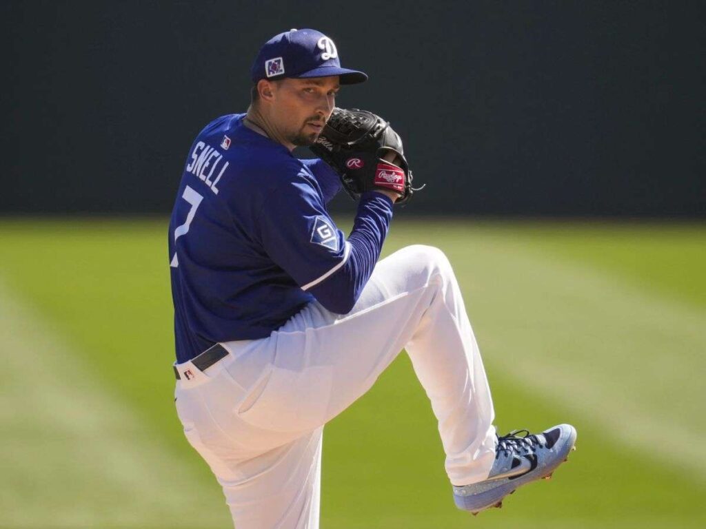 Snell, quien acordó un contrato de cinco años y 182 millones de dólares con los angelinos en noviembre, lanzó 20 de 30 lanzamientos en strike. En ese inning, consiguió dos roletazos de out, un ponche y permitió un sencillo luego de dos outs.