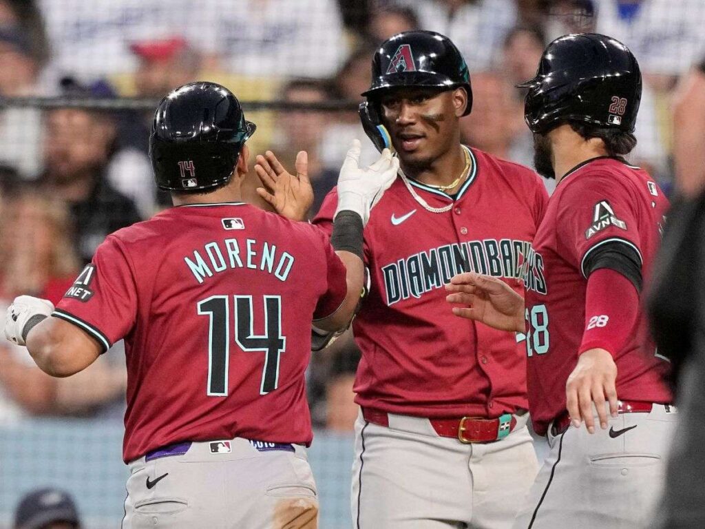 Los Cascabeles de Arizona lograron una contundente victoria 9-3 ante los Dodgers de Los Ángeles en un sorprendente partido en el que el venezolano Gabriel Moreno brilló con el madero.