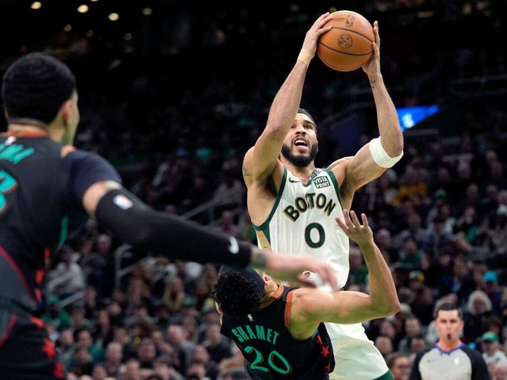 Jayson Tatum anotó 35 puntos y encendió una remontada en el tercer periodo para que los Celtics de Boston, líderes de la NBA, obtuvieran su 40mo triunfo de la campaña, al superar el viernes 133-129 a los Wizards de Washington.