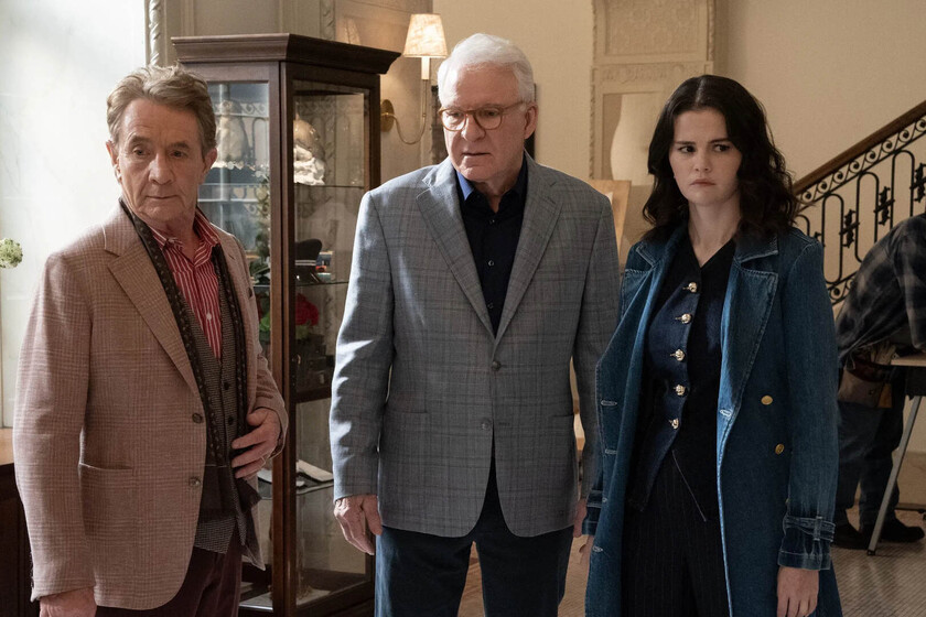 ‘La casa siempre…‘ arranca con la revelación de que el amputado dedo pertenecía a un amante de Sofia (Téa Leoni). El quién lo descubrimos poco después cuando Mabel (Selena Gomez), Charles (Steve Martin) y Oliver (Martin Short) reúnen al trío millonario formado por Jay (Logan Lerman), Bash (Christoph Waltz) y Camila (Renée Zellweger).