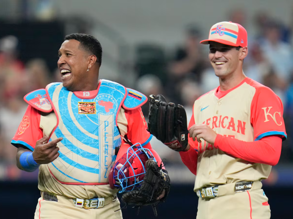 El receptor venezolano de los Reales de Kansas City, Salvador Pérez, acudió a su noveno Juego de Estrellas y terminó recibiendo las últimas cuatro entradas de camino a la victoria de la Liga Americana 5-3 sobre la Nacional en el Globe Life Field.