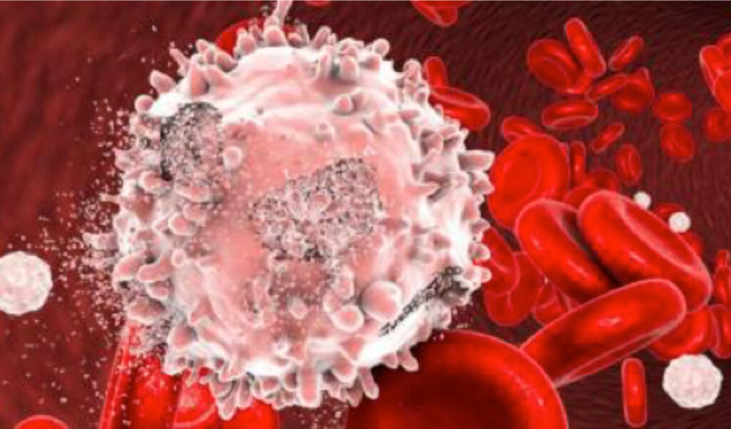 Recreación de la destrucción de una célula de leucemia.