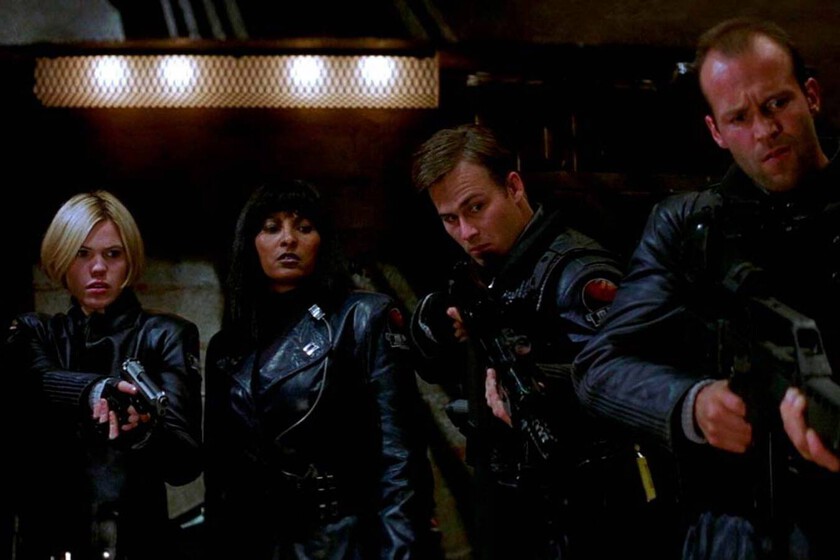 Ambientada en una colonia minera marciana, la producción reciclaba muchas ideas anteriores de Carpenter y las empaquetaba como un homenaje encubierto al western más clásico. De hecho, ‘Fantasmas de Marte’ no es otra cosa que una reinterpretación de ‘Río Bravo‘, el clásico de Howard Hawks con John Wayne. Aunque, en lugar de vaquero, aquí hay policías futuristas, un desierto rojo y mineros poseídos por espíritus marcianos. Y aunque el reparto estaba liderado por Natasha Henstridge e Ice Cube, también destacó Statham como el sargento Jericho.