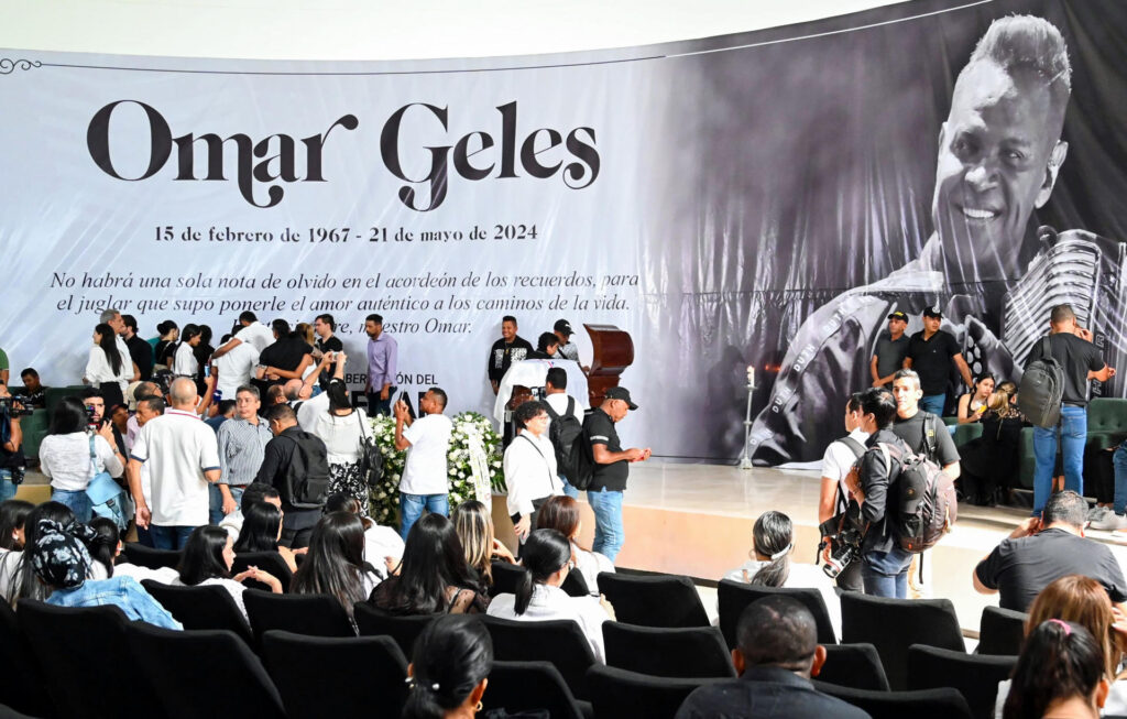 El compositor, cantante y acordeonista colombiano Omar Geles, fallecido el martes y autor de más de mil canciones vallenatas, fue despedido el jueves 23 de mayo por una multitud y con honores oficiales.